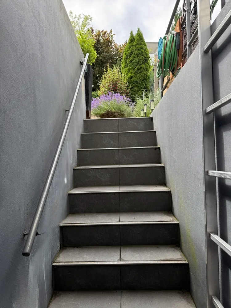 Im Erdgeschoss erwartet Sie ein offenes Wohnkonzept mit Wohn- Esszimmer und gehobener Einbauküche. Von hier betreten Sie den kleinen Garten mit Terrasse und externen Kellerzugang, der sich schon auf den ersten Grillabend freut. Ein neues Gäste-WC rundet das Erdgeschoss ab.